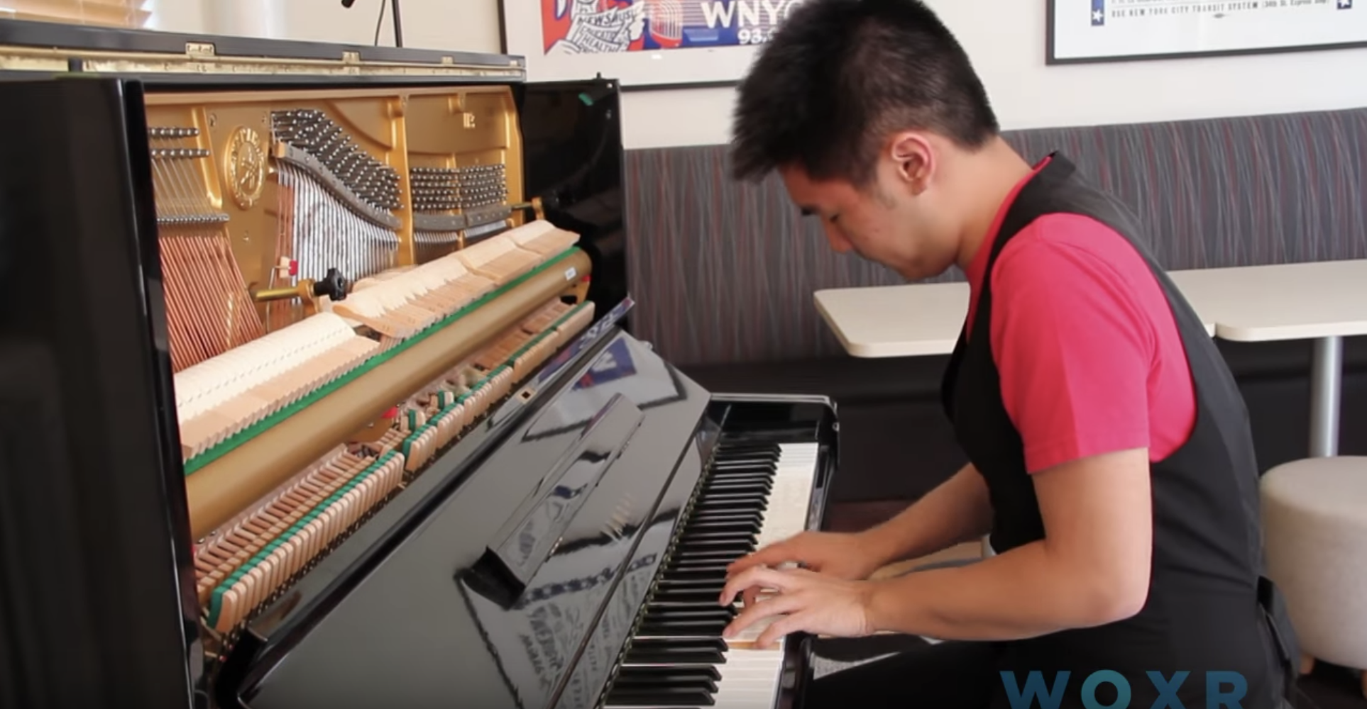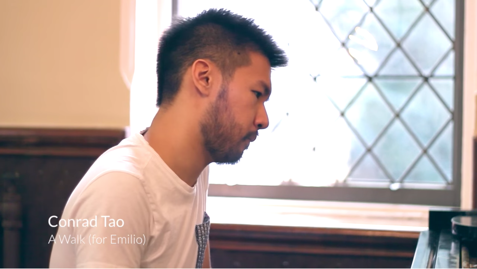 Conrad performs J.S. Bach’s Goldberg Variations Aria and Variation I at the Steinway Factory, accompanied by tap dancer Caleb Teicher